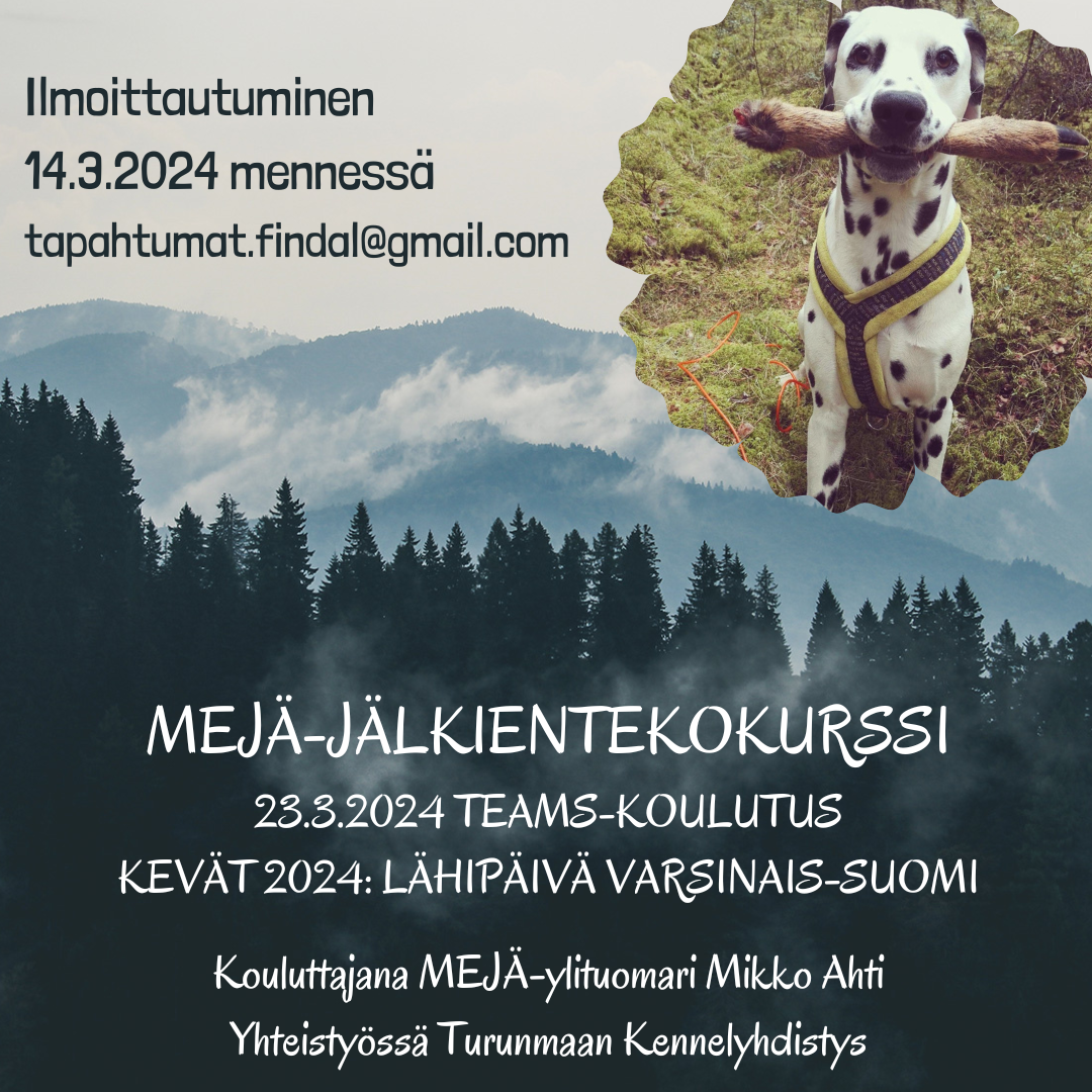 Sitä ennen Turunmaan Kennelyhdistys järjestää kaksiosaisen MEJÄ-jälkientekokurssin keväällä 2024.